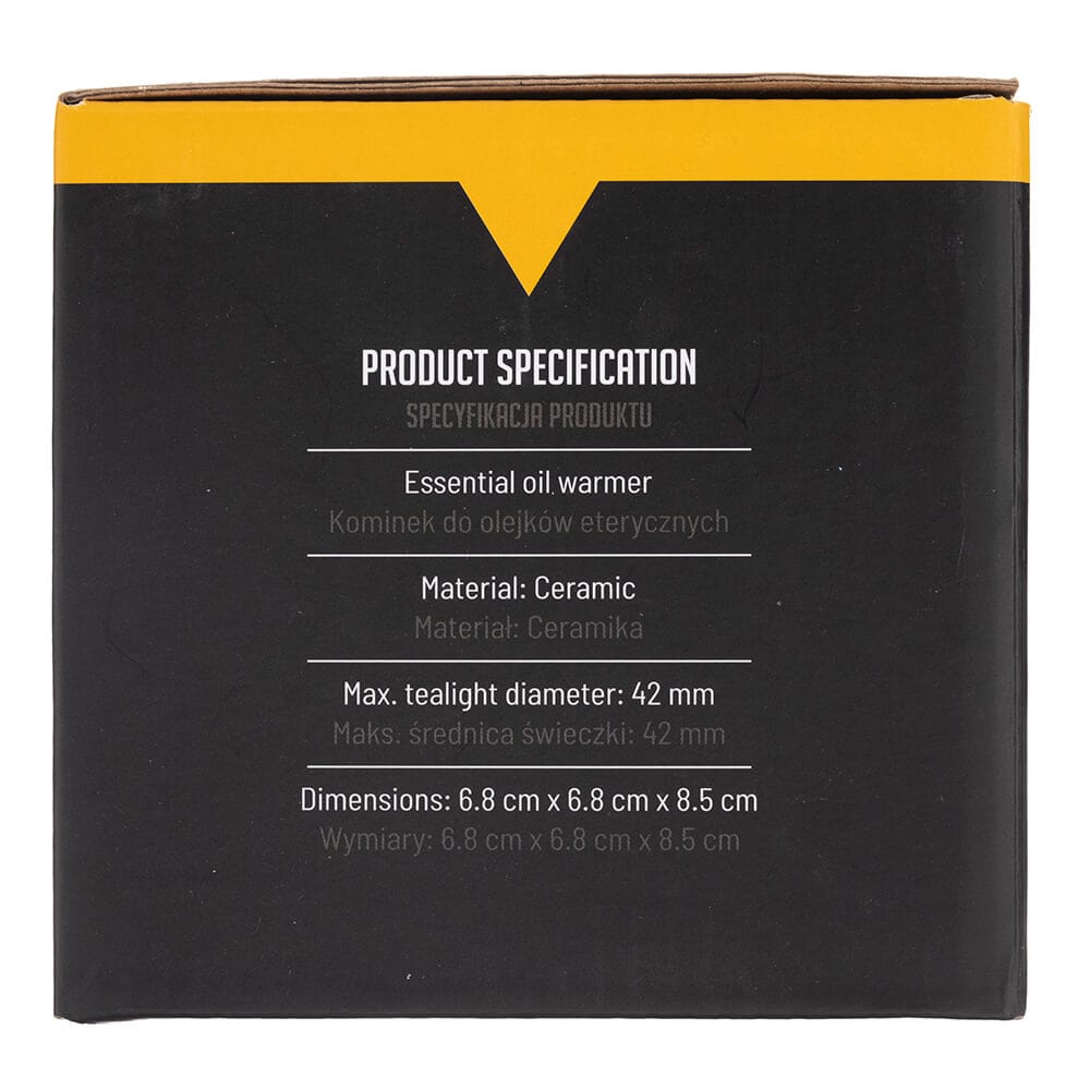 Bilovit keramikas ēterisko eļļu kamīns ir unikāla estētikas un praktiskuma kombinācija, kas jūsu mājoklim piešķirs gan eleganci, gan funkcionalitāti. Izgatavots no izturīgas, augstas kvalitātes keramikas, tas pārsteidz ar savu pamatīgo apstrādi un stilīgo izskatu, padarot to ne tikai par praktisku līdzekli, bet arī par jebkura interjera dekoratīvu elementu. Tā kompaktie izmēri 68 x 68 x 85 mm () padara to lieliski piemērotu dažādu telpu interjeram - no dzīvojamās istabas līdz guļamistabai un vannas istabai. Maksimālais sveces diametrs 42 mm nodrošina drošu un efektīvu jūsu iecienītāko aromātisko produktu, sildīšanu, ļaujot jums radīt savās mājās unikālu, relaksējošu atmosfēru, kas jums patiks.