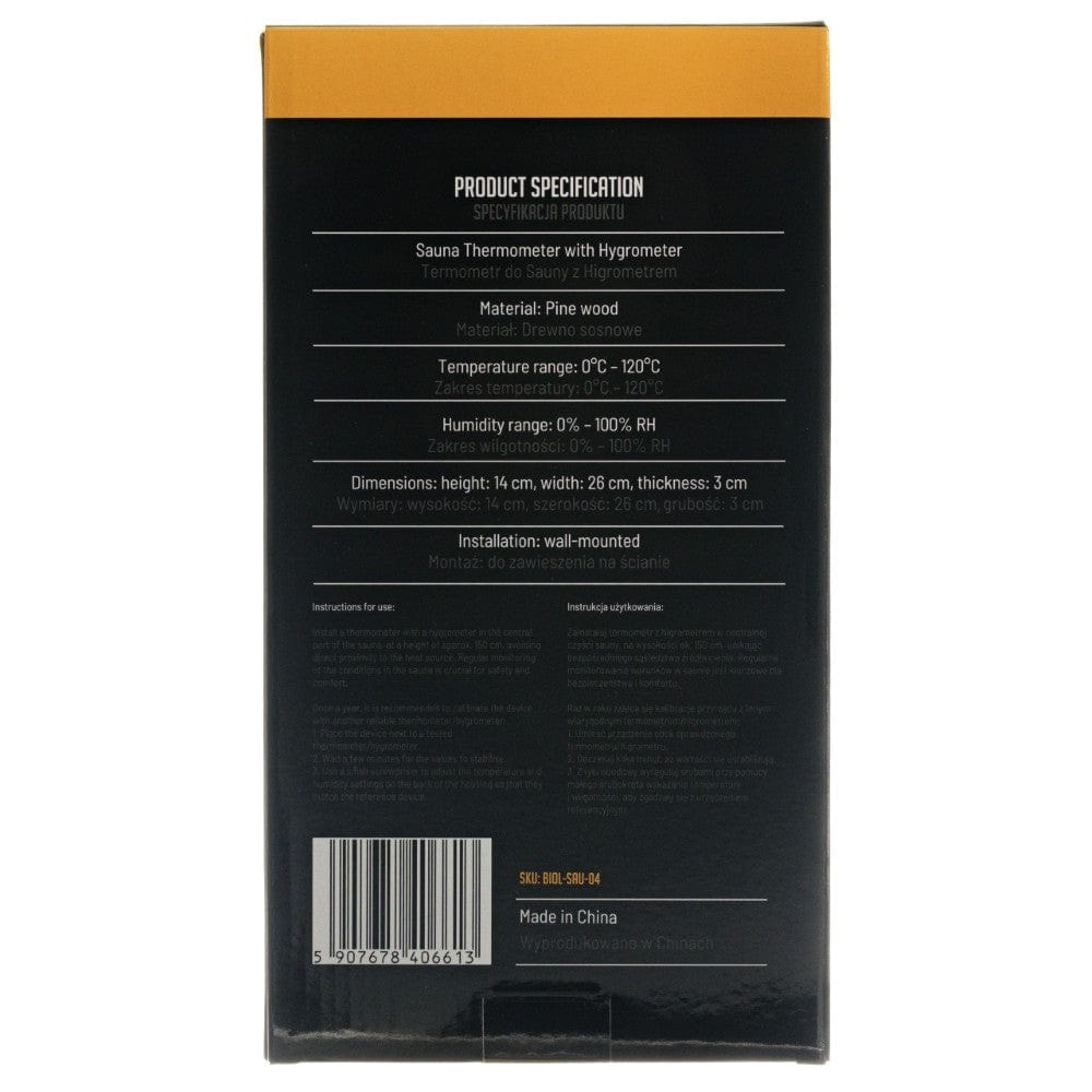 Bilovit saunas termometrs ar higrometru ir neaizstājams palīgs ikvienam, kam svarīgs komforts un optimāli apstākļi saunas apmeklējuma laikā. Izgatavots no gaišas priedes koka, tas nesasilst, tādēļ ir ideāli piemērots uzstādīšanai saunās. Termohigrometrs ir aprīkots ar diviem precīziem pulksteņiem, kas skaidri parāda pašreizējo temperatūru (no 0 līdz 120 grādiem pēc Celsija) un mitrumu (no 0 līdz 100%), ļaujot jums pilnībā kontrolēt apstākļus saunā. Pateicoties minimālistiskajam dizainam, tas perfekti iederas gan modernā, gan tradicionālā saunas interjerā. Galvenās Bilovit termometra ar higrometru priekšrocības: Precīzs mērījums: termometrs rāda temperatūru no 0 līdz 120 °C, bet higrometrs – mitrumu no 0 līdz 100%, ļaujot kontrolēt apstākļus saunā.