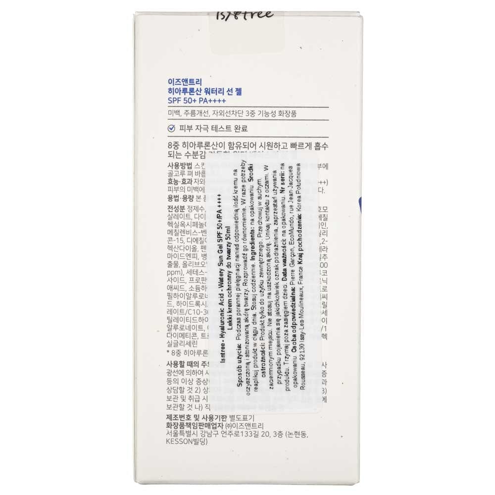 Isntree Hialuronskābes ūdens želeja pret saules stariem SPF 50+ PA++++ UVA/UVB - 50 ml