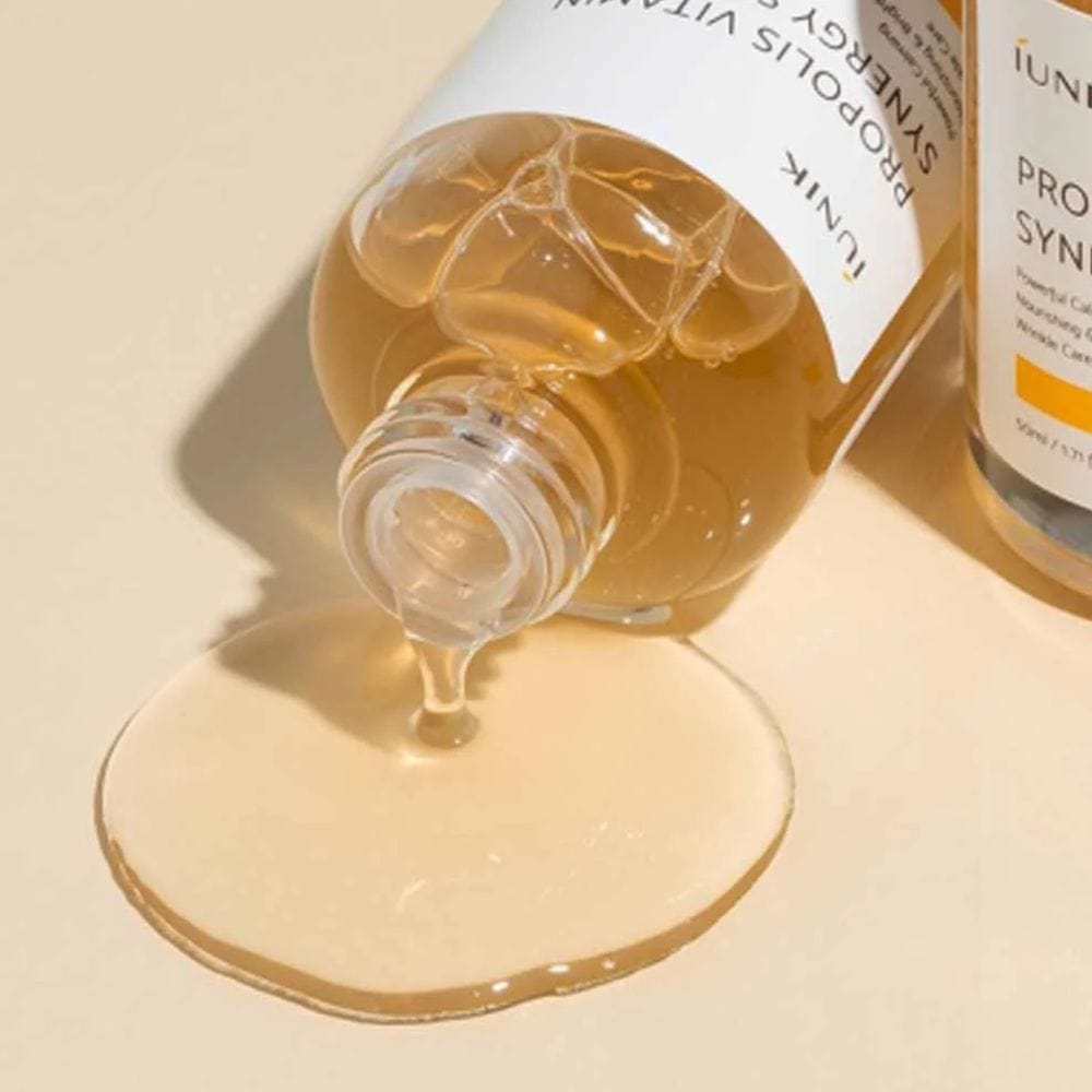 IUNIK Propolis Vitamin Synergy Serum ir inovatīvs stiprinošs serums , kas izmanto propolisa un smiltsērkšķu ekstraktu sinerģisko iedarbību. Formulā ir augsta koncentrācija aktīvo sastāvdaļu , kas vispusīgi rūpējas par ādas stāvokli — no aizsargbarjeras stiprināšanas līdz ādas tonusa izgaismošanai un izlīdzināšanai.