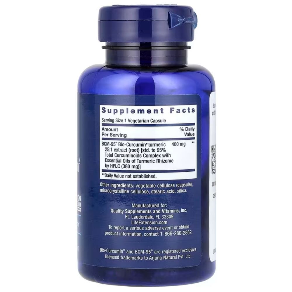 Life Extension Super Bio-Kurkumīna ekstrakts ir uztura bagātinātājs kapsulās. Kurkuma ekstrakts ir kurkuma ekstrakts, kas bagāts ar kurkumīnu. Sniedz 400 mg kurkuma , kas standartizēts līdz 95% no kopējā kurkuminoīdu kompleksa.