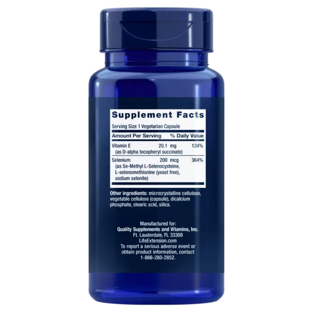 Life Extension Super selēna komplekss 200 mcg un E vitamīns - 100 augu kapsulas