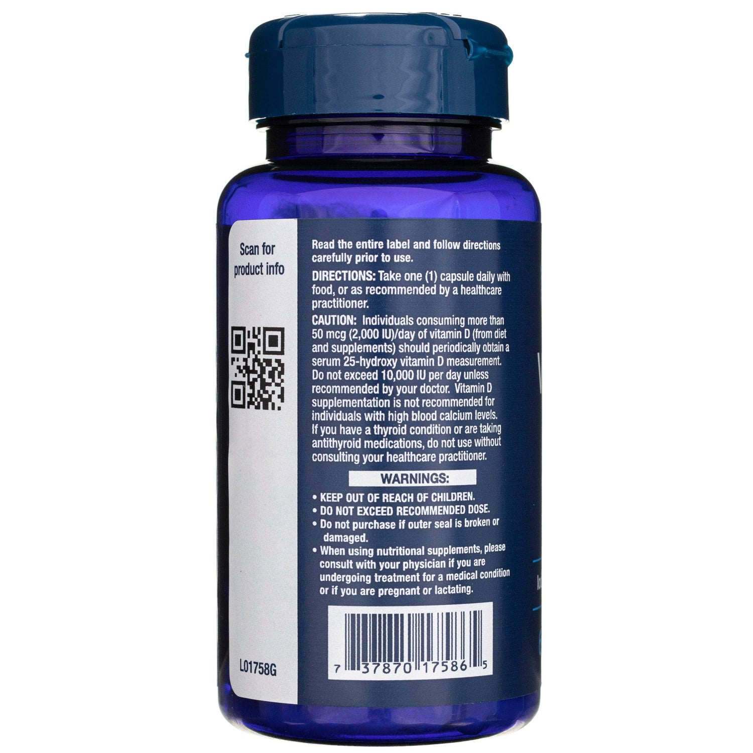 D vitamīns ir taukos šķīstošs vitamīns, ko var iegūt ar uzturu vai sintezēt ādā pēc saules gaismas iedarbības. D3 vitamīns, D vitamīna forma, kas veidojas ādā, ir spēcīga un aktīva vitamīna forma. D2 vitamīns ir D vitamīna analogs, kas fotosintēzes laikā veidojas augos, sēnēs un raugos. Lai gan D2 vitamīnu dažkārt izmanto pārtikas produktu bagātināšanā, Puritan's Pride uztura bagātinātāji nodrošina aktīvo formu.