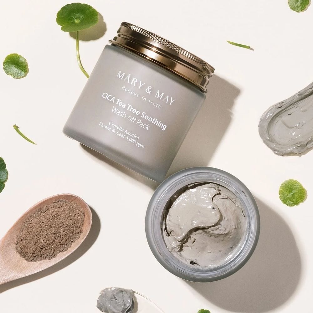 Mary&May CICA TeaTree Soothing Wash off Pack ir specializēta maska, kas apvieno māla attīrošās īpašības un augu izcelsmes sastāvdaļu nomierinošo iedarbību. Šī drošā un efektīvā formula ir radīta ādai, kurai nepieciešama gan attīrīšana, gan nomierināšana.