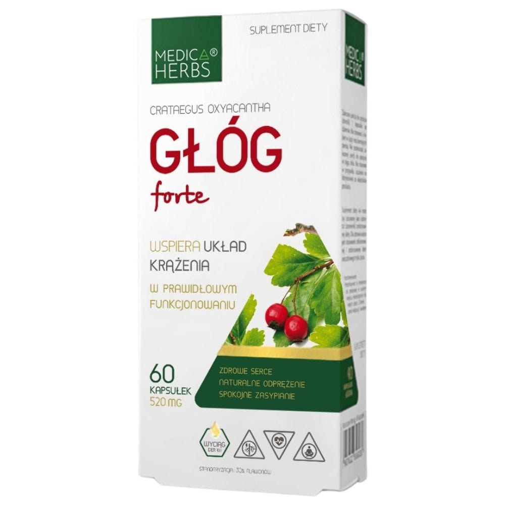 Medica Herbs Hawthorn Forte ir uztura bagātinātājs kapsulās. Tas satur g vilkābeles (Crataegus oxyacantha) ekstraktu , standartizētu flavonu . Produktā nav nevajadzīgu piedevu un pildvielu.