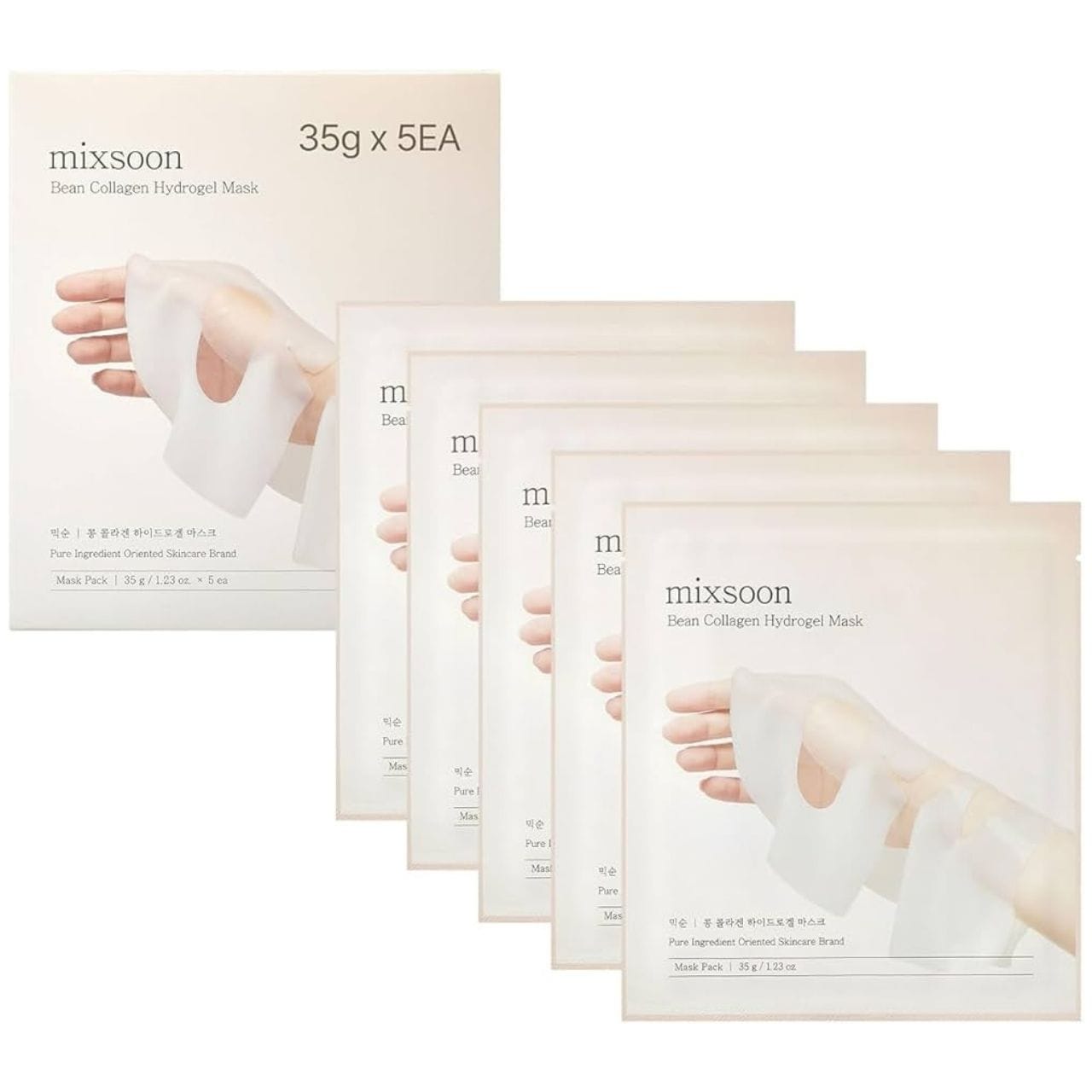 Mixsoon Bean Collagen ir hidroģela maskas ar fermentētu sojas, miežu, bumbieru un granātābolu ekstraktiem un augu kolagēnu. Tās intensīvi mitrina, izlīdzina un atjauno ādas starojumu.