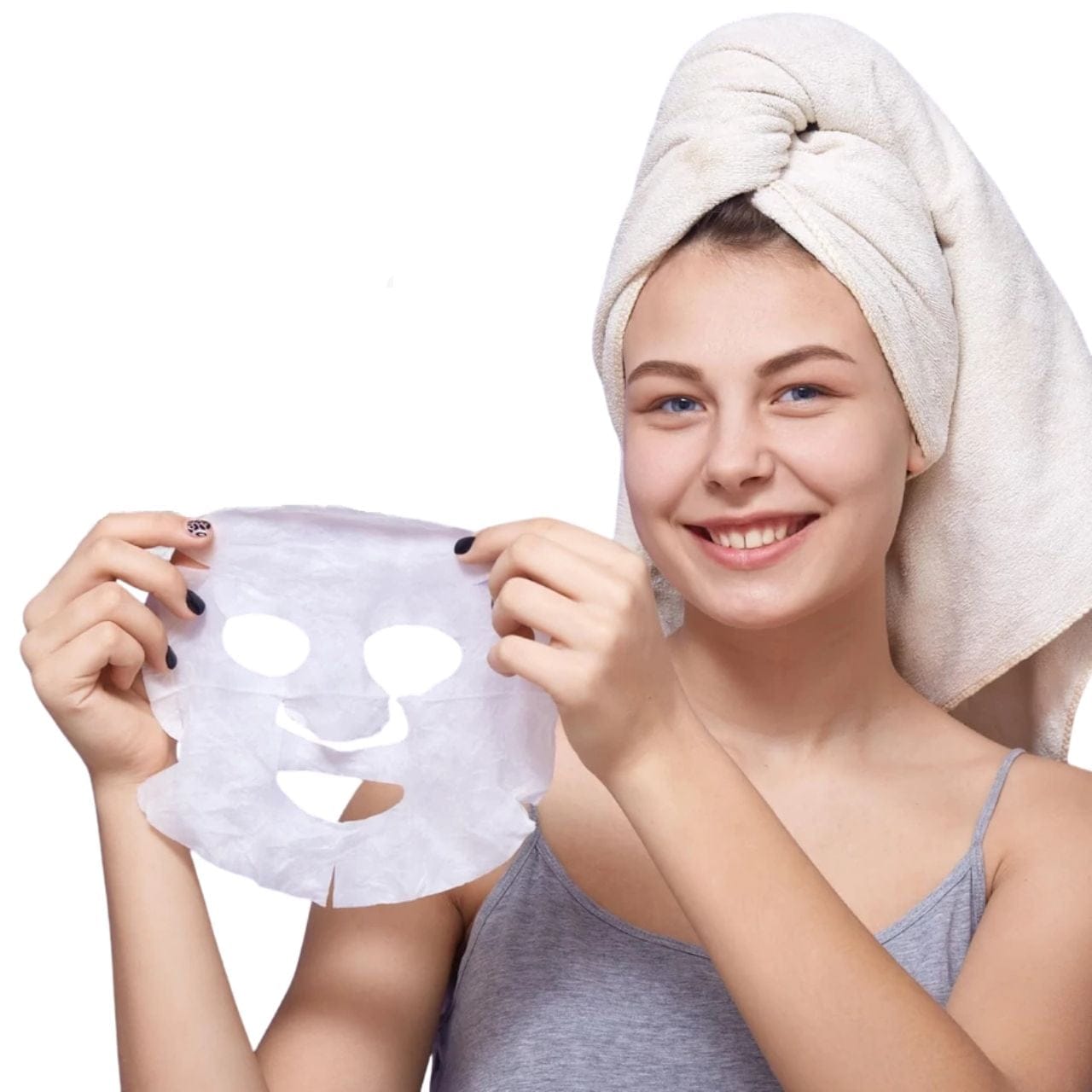 Uzklājiet masku uz attīrītas un tonizētas ādas, pielāgojot atvērumus acīm un muti. Ļaujiet iedarboties 10-20 minūtes, pēc tam noņemiet un viegli ieklopojiet atlikušo esenci ādā, līdz tā iesūcas.