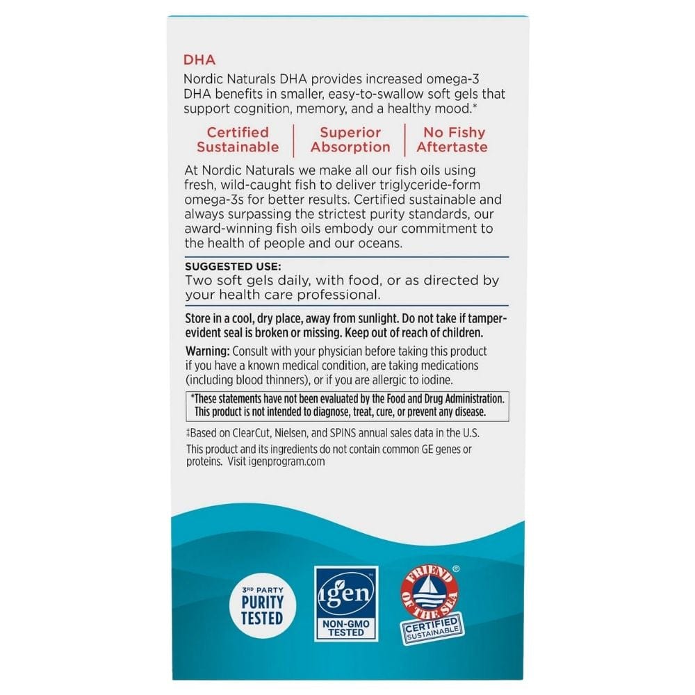 Nordic Naturals DHA ir uztura bagātinātājs želejas kapsulās. Formula nodrošina 830 mg Omega-3 , tostarp pat 480 mg DHA (dokozaheksaenoiskābes).
