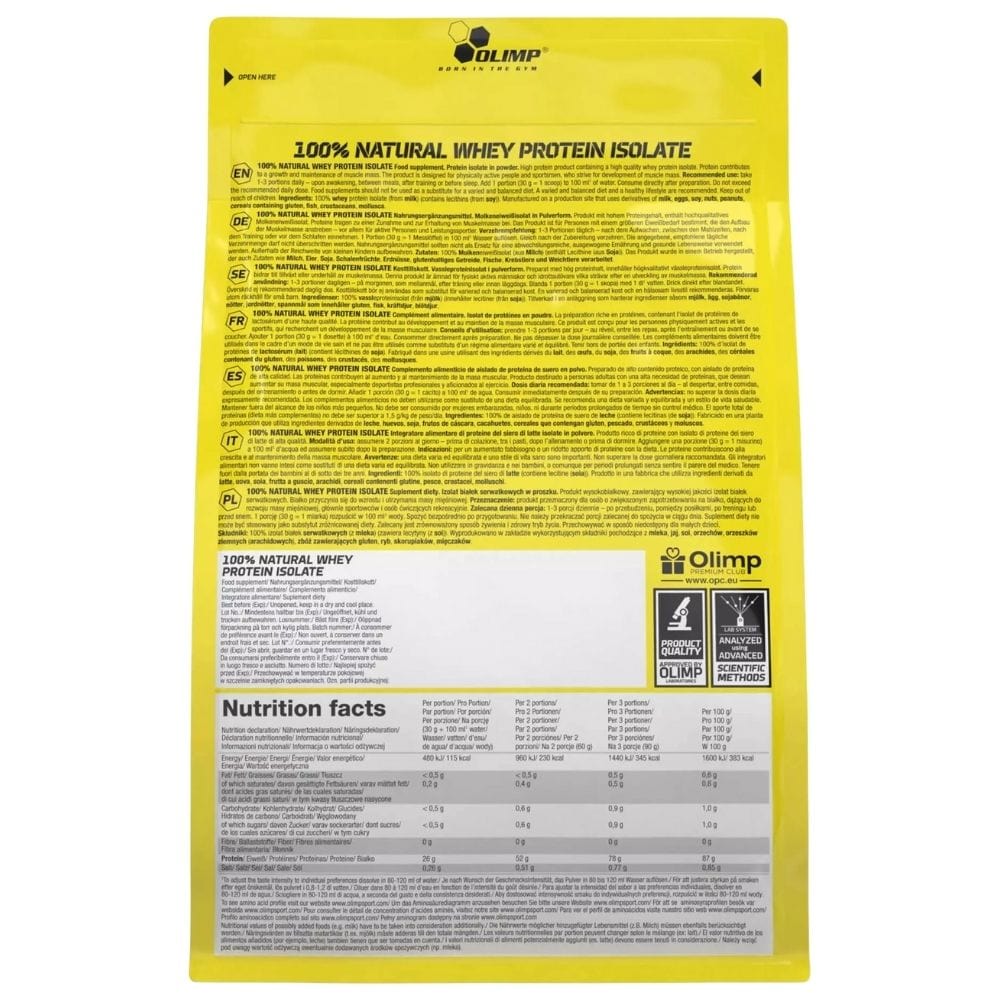 Olimp 100% Natural Whey Protein Isolate īpašības:
