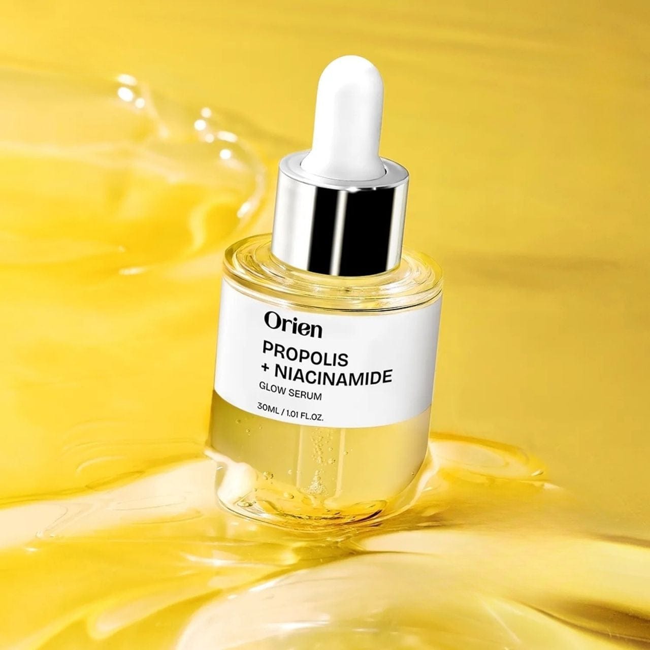 Orien Propolis Niacinamide Glow Serum ir daudzfunkcionāls izgaismojošs serums , kas paredzēts blāvai , nogurušai ādai ar nevienmērīgu toni. Tā vieglais , ūdens bāzes sastāvs uzsūcas uzreiz, neatstājot lipīgu plēvi.