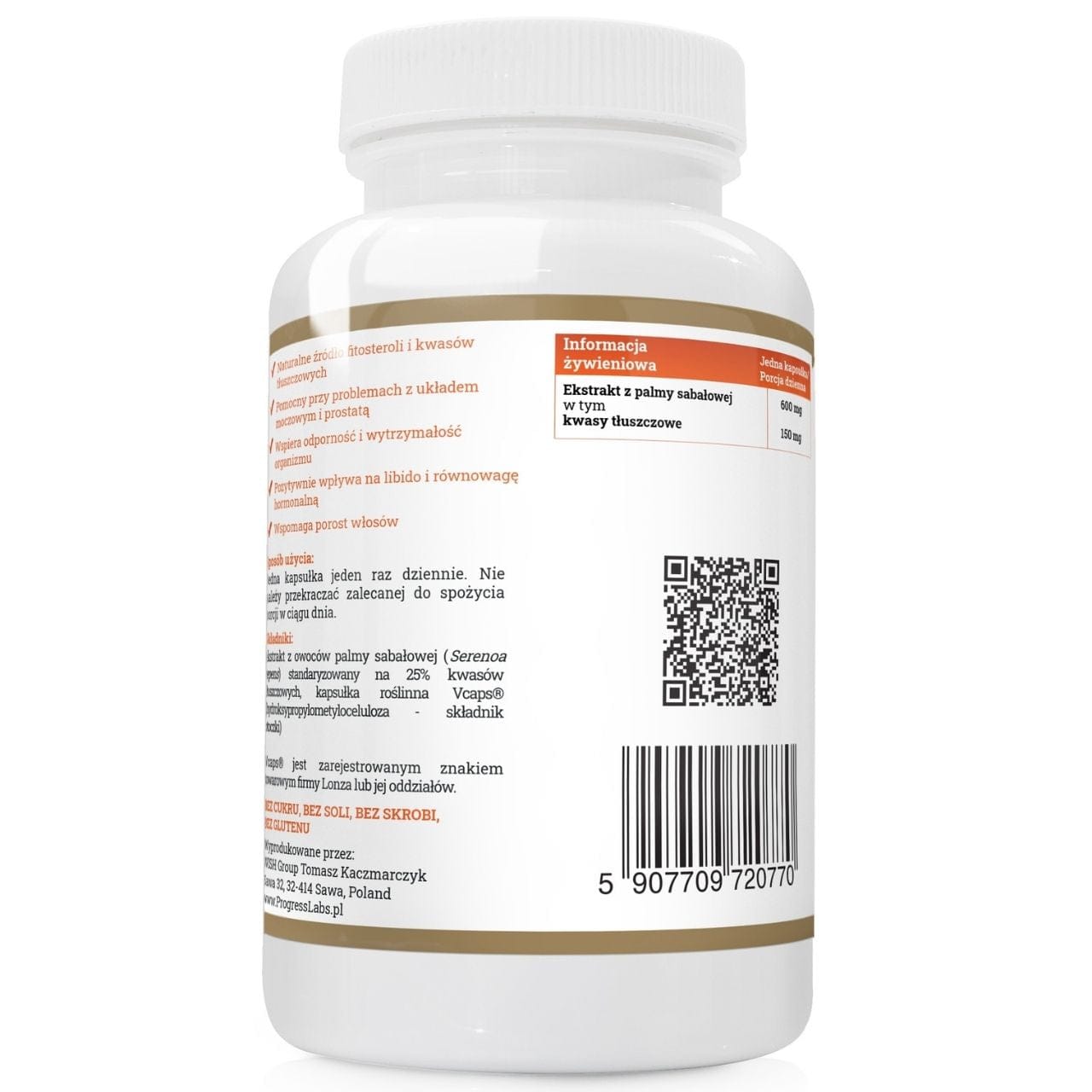 Progress Labs Saw Palmetto is a dietary supplement in capsule form. Source of saw palmetto fruit extract, standardised to contain 25% fatty acids. Provides 600 mg of the substance in 1 capsule.