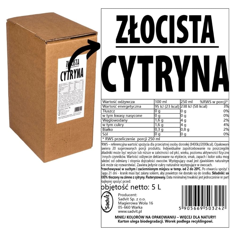 Sadvit Zelta citrona sula 100% - 5000 ml