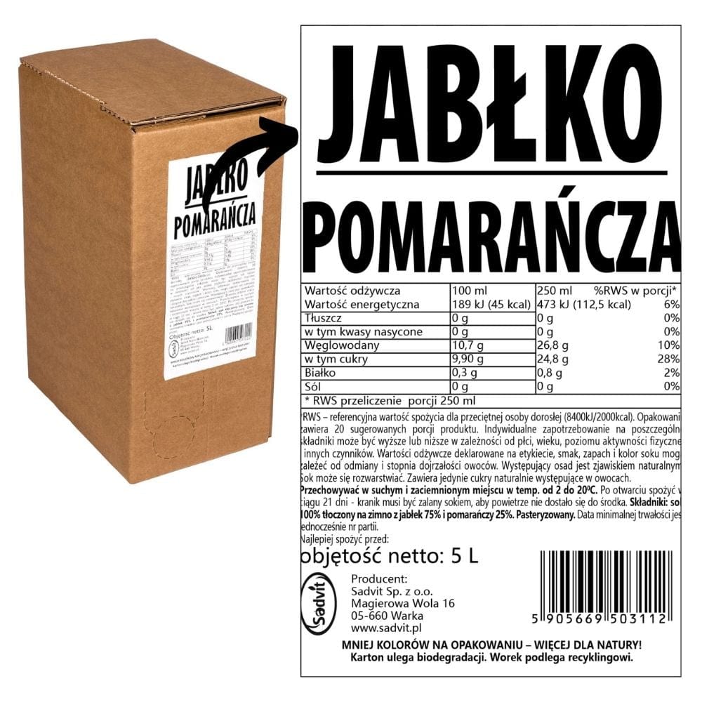 DRINKME ābolu un apelsīnu sula ir 100% dabīgs dzēriens , kas apvieno Grójec apgabala vietējo ābolu saldumu ar apelsīnu sulas svaigumu. Auksti spiesta, bez piedevām vai koncentrātiem, tā saglabā augļu pilnīgo garšu un uzturvērtību.