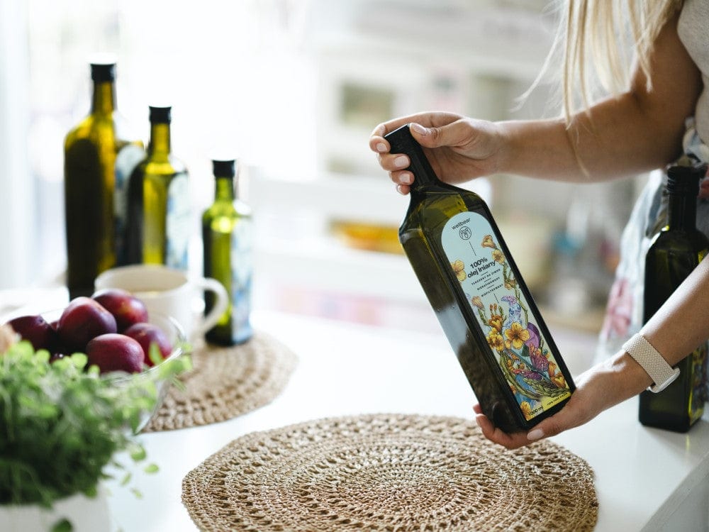 Wellbear flaxseed oil will help you keep your health in top condition. The oil is natural, unfiltered and unrefined, cold-pressed in a Polish oil mill. It has no preservatives or additives, so it retains its health-promoting properties for up to a month after opening the bottle when you keep it in the refrigerator.