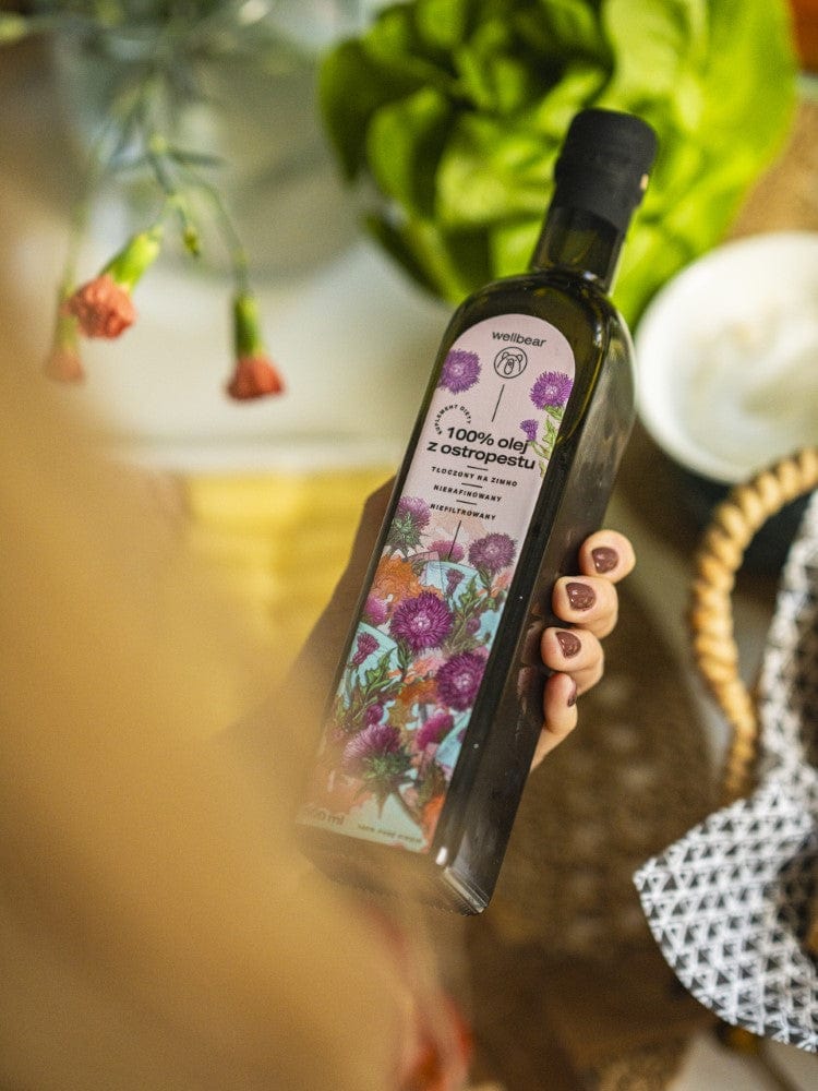 Piena dadžu eļļa no Wellbear palīdzēs jums saglabāt veselību labā formā. Eļļa ir dabiska, nefiltrēta un nerafinēta, auksti spiesta Polijas eļļas spiestuvē. Tajā nav konservantu vai piedevu, tāpēc tā saglabā savas veselību veicinošās īpašības līdz pat vienam mēnesim pēc pudeles atvēršanas, ja to glabā ledusskapī.